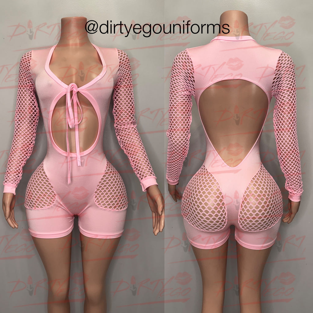 All net romper w/bikini top and bottoms