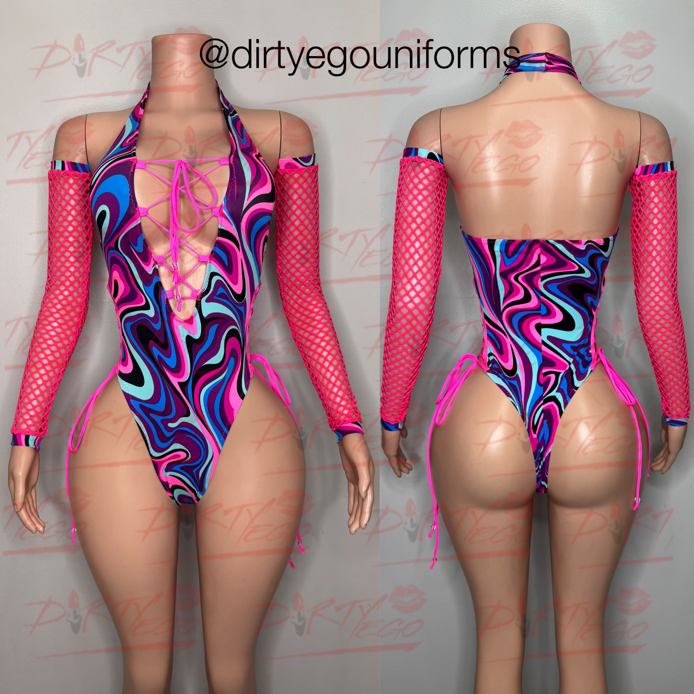 Halter leotard. Detached net sleeves. Made to order. Allow 5-7 days for processing.